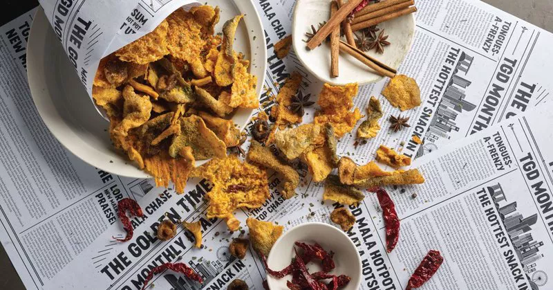 - Green Curry Mushroom Chips: With fragrant notes of basil, kaffir, crushed kaffir lime leaves and green curry spices, these crunchy mushrooms bring you on a culinary adventure into the heart of Southeast Asia.